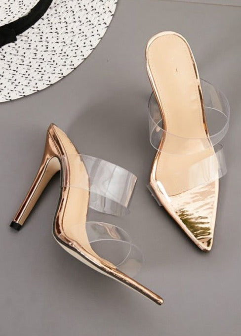Rose Gold Duo Perspex Mule Heels